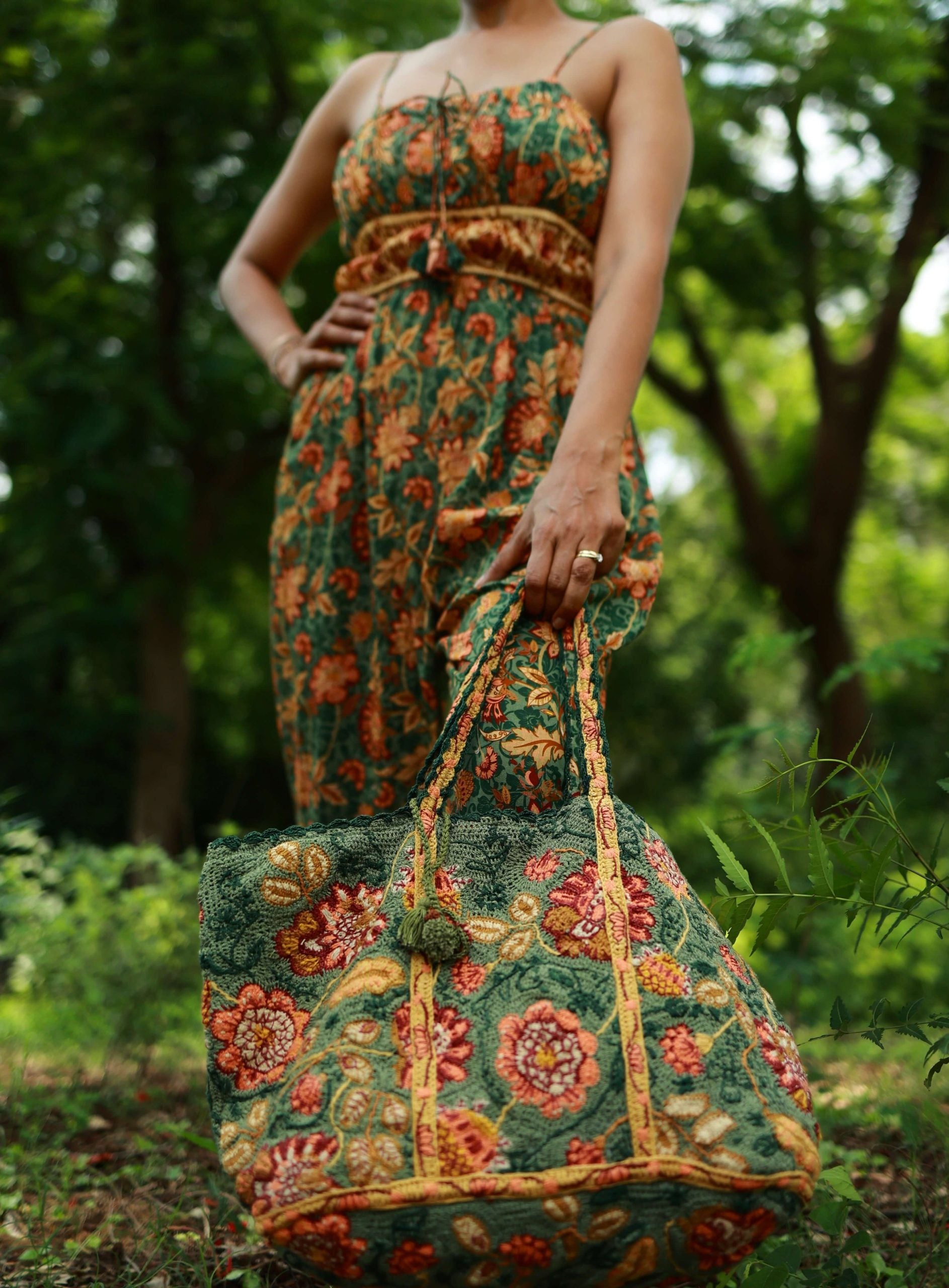 Indulge in the unparalleled craftsmanship of Rabari's Original Crochet Tote Bag from the Faith Collection. This exceptional tote is a masterpiece, meticulously handcrafted from 100% cotton yarn. It features a harmonious blend of crochet and delicate embroidery techniques.This bag is a labor-intensive creation, requiring over 350 hours of dedicated work by skilled artisans who pour their expertise into every stitch. The intricate motifs, woven with care, embody the timeless beauty and authenticity.