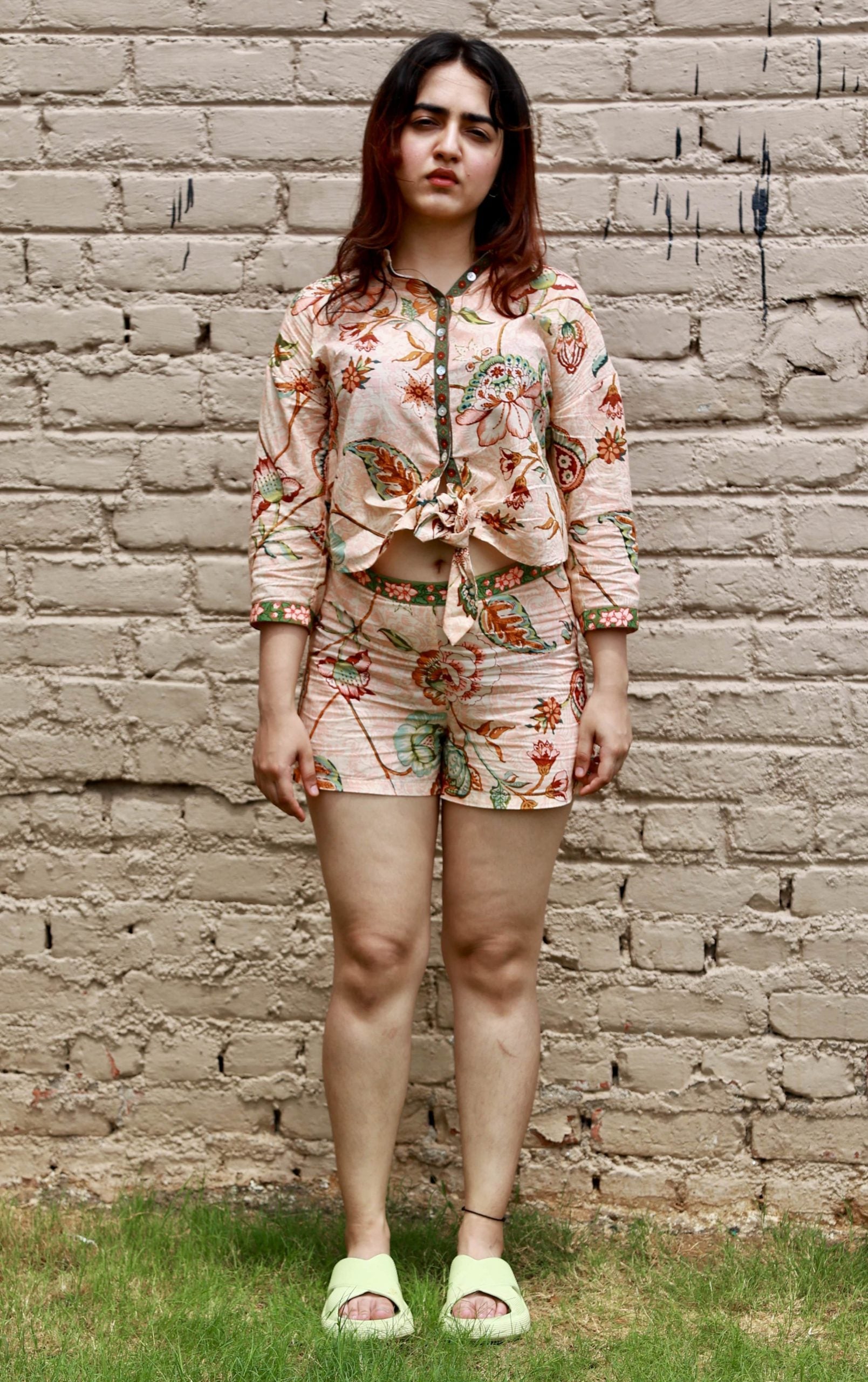 These classic high-waisted shorts, with border waistband are effortlessly chic. Pair them with the coordinating crop shirt or a basic T-shirt
