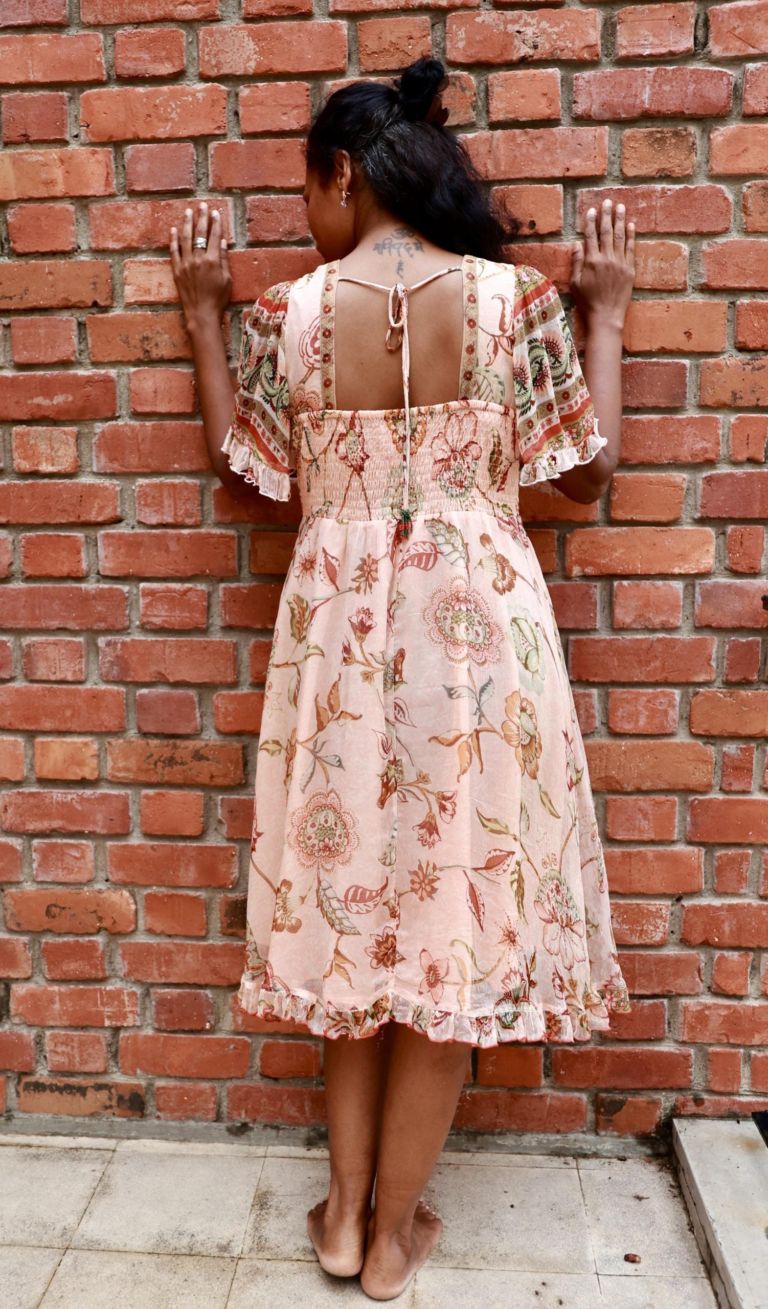 The Sicily Dress features a relaxed fit with a flattering V-neckline, accented by delicate ruching at the bust and ruffled sleeves . The midi length and frilled hem add a touch of charm.This dress is perfect blend of comfort and style.