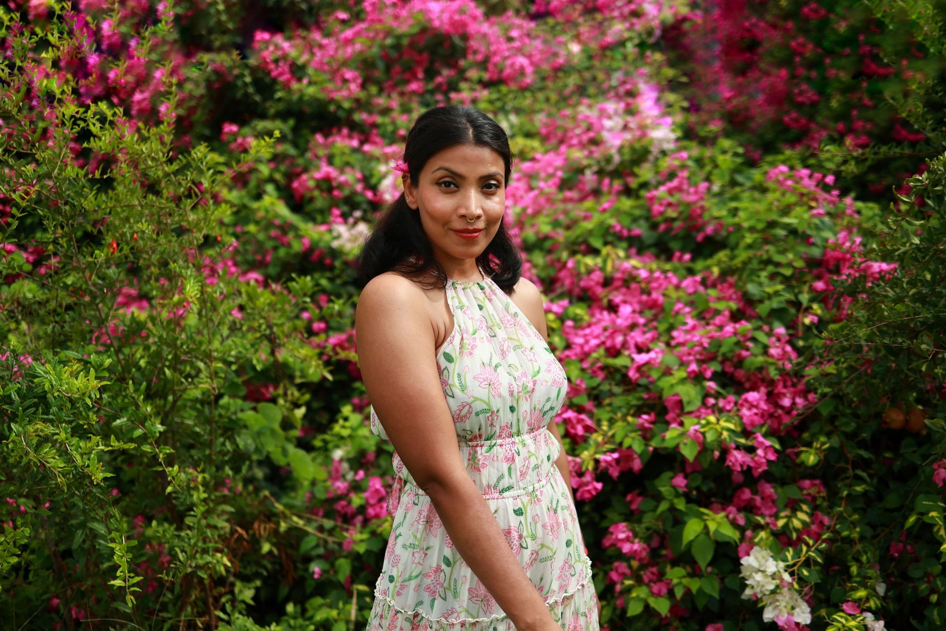 Radiate charm with Chiffon Rio Dress, featuring a delicate floral print and a flowing silhouette. The halter neckline and a flattering gathered waist .The stunning open back, accentuated by a charming tie bow, provides a captivating finish, perfect for special occasion.